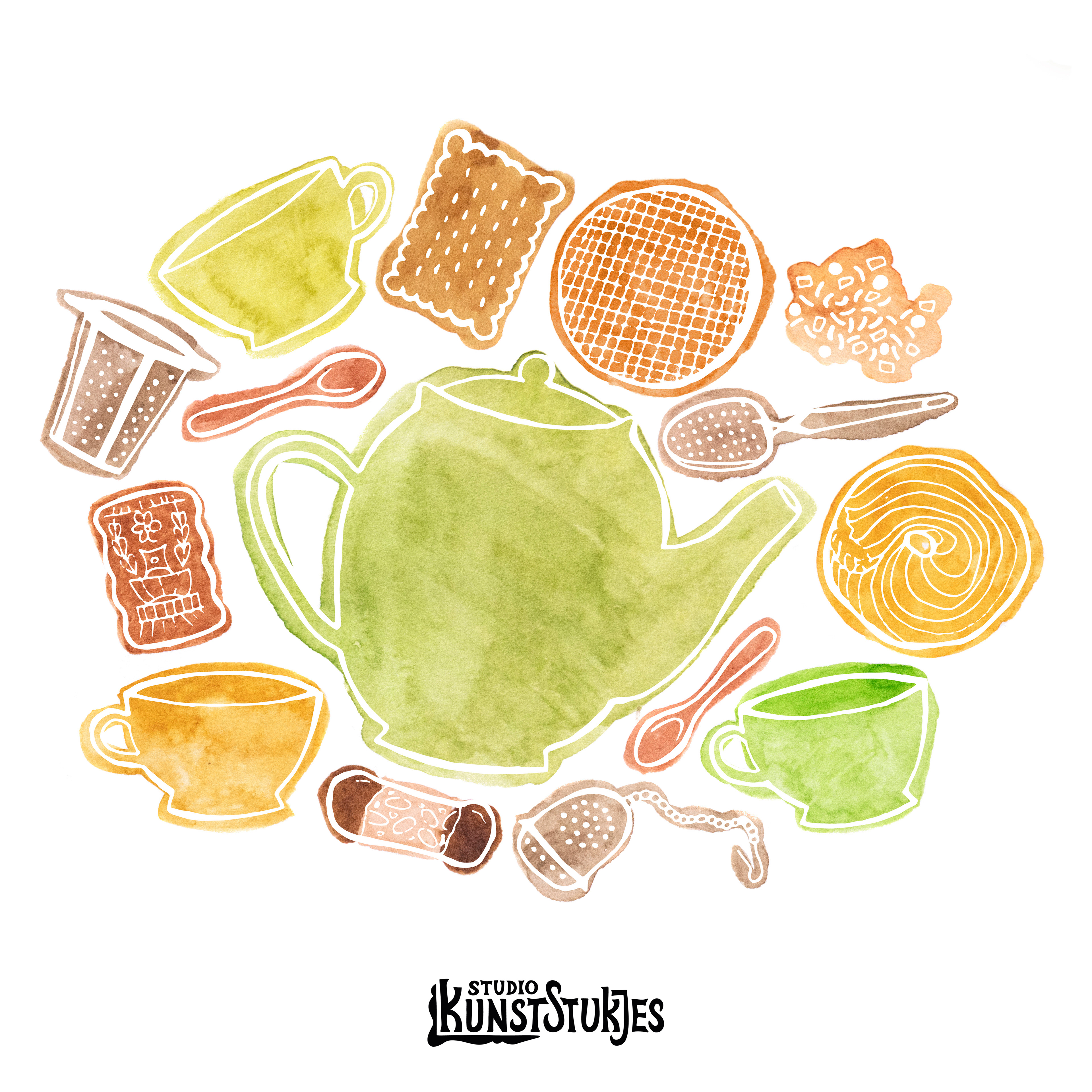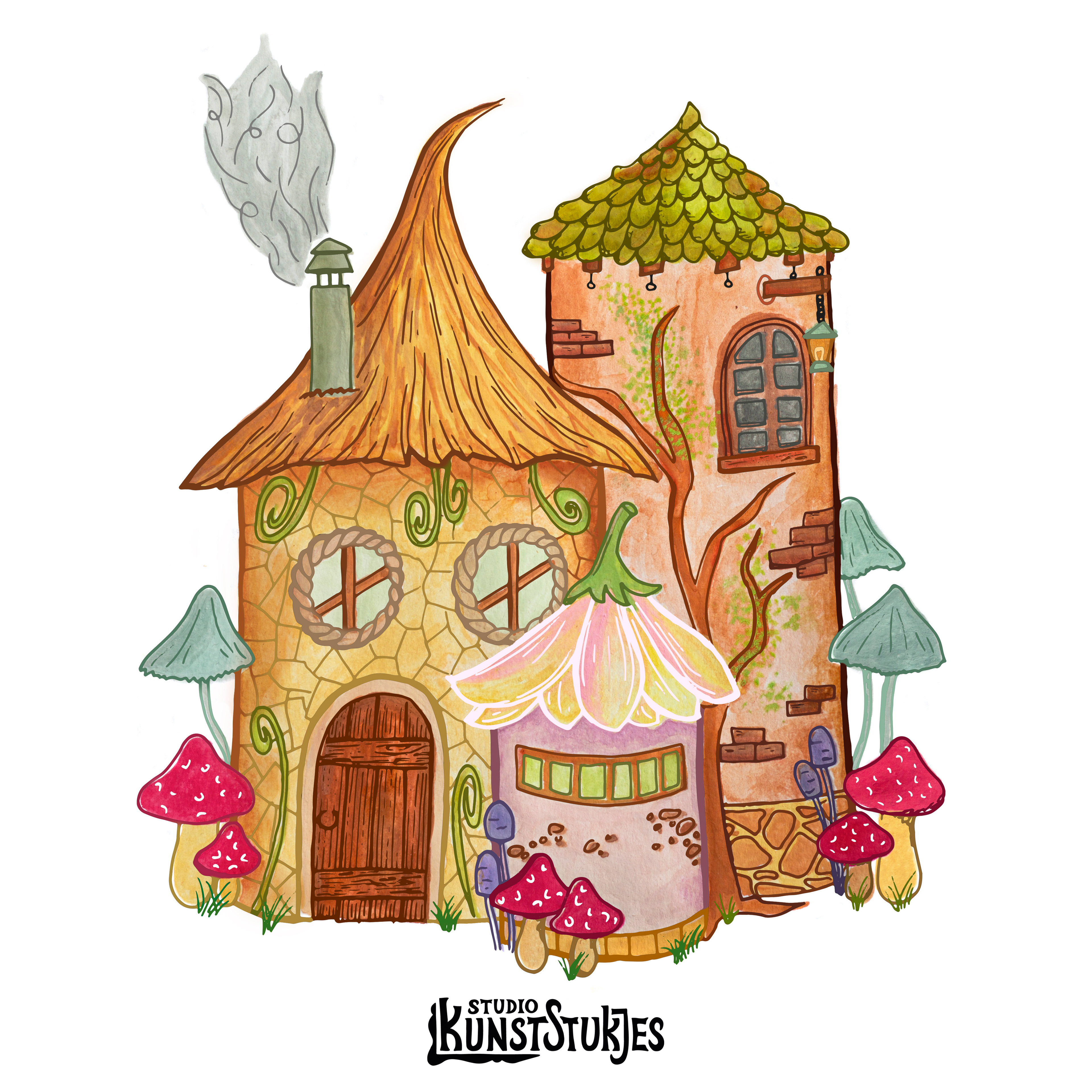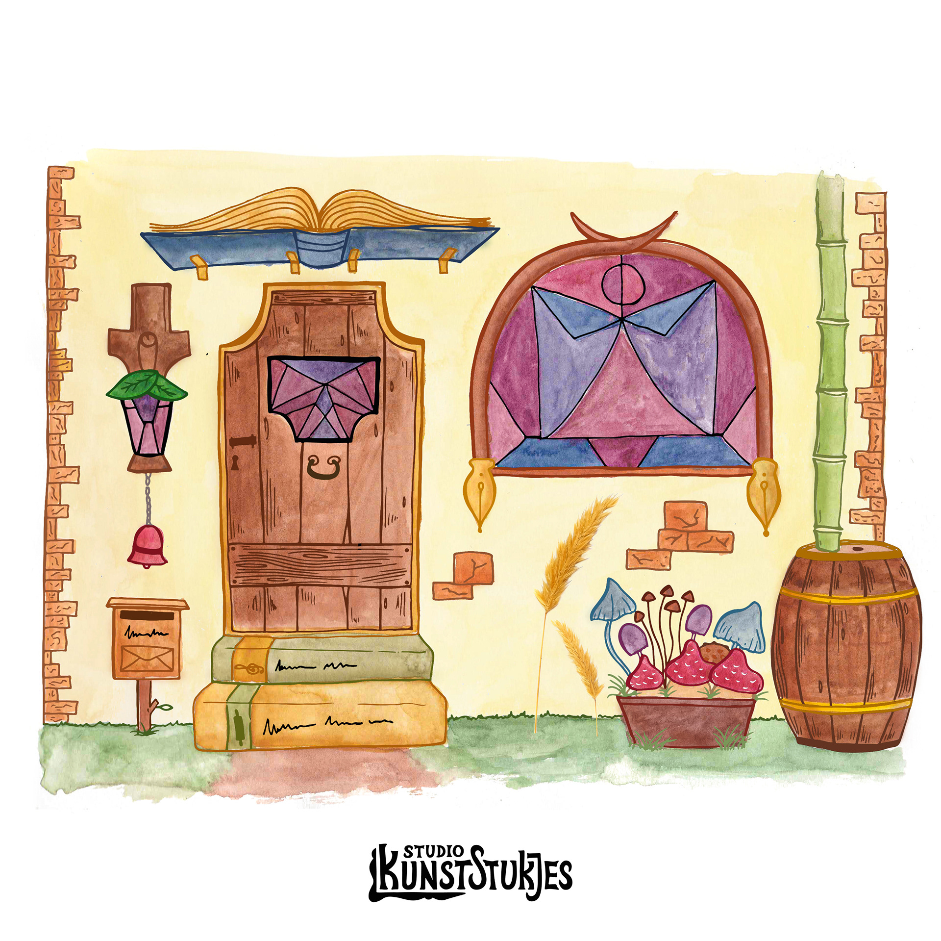 Veel waterverf en een beetje pen.